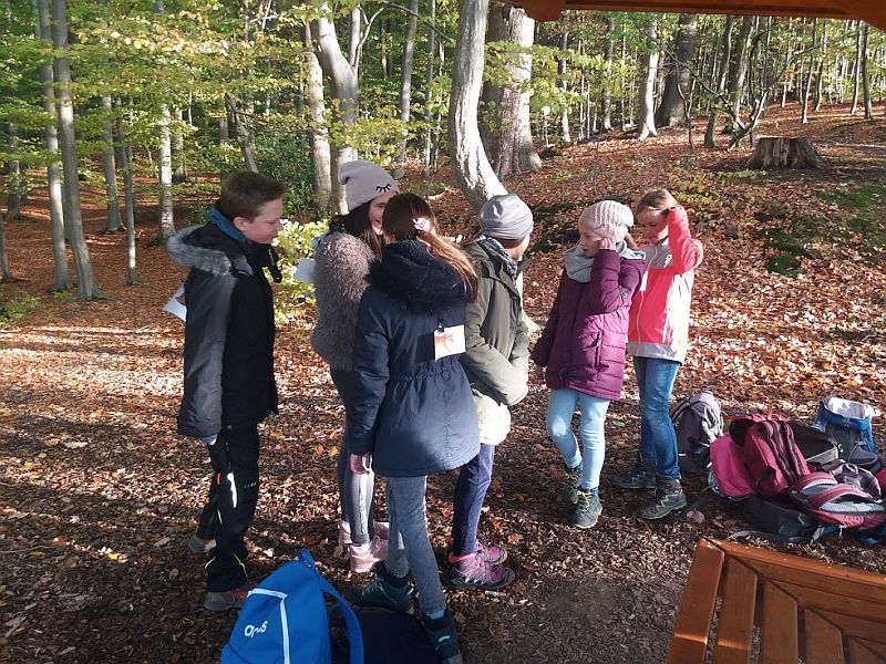 Am Mittwoch, den 31. Oktober 2018, machten sich die Schülerinnen und Schüler der Klasse 5b bei strahlendem Sonnenschein zu einer Erlebniswanderung durch das Eichholz auf. Begleitet wurden sie von ihren Klassenlehrern Herrn Wietschorke und Frau Kreis, die auch noch ihren Hund Max als Unterstützung mitbrachte.