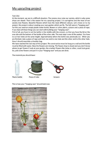 Daher entwickelten die SchülerInnen der EF eigene Upcycling-Projekte, die sie gerne mit euch teilen möchten. Vielleicht sitzt ihr zuhause und langweilt euch nach so langer Zeit ohne Schule, Verabredungen und sonstigen Freizeitbeschäftigungen. Eine kreative Bastelidee mit Gegenständen, die sich in fast jedem Haushalt befinden, kommt euch da vielleicht sehr gelegen. Und ganz nebenbei tut ihr auch noch etwas Gutes für die Umwelt.