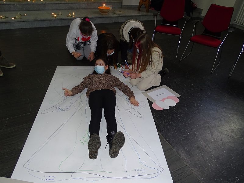 Zu Beginn des Gestaltungsprozess stand der individuelle Zugang der Schülerinnen und Schüler zu dem Thema „Engel“. Nach einem gemeinsamen Austausch und einer Reflexion der Vorstellungen der Schülerinnen und Schüler haben wir uns im Unterricht mit Darstellungen von Engeln in der Kunst befasst. Beispielsweise
