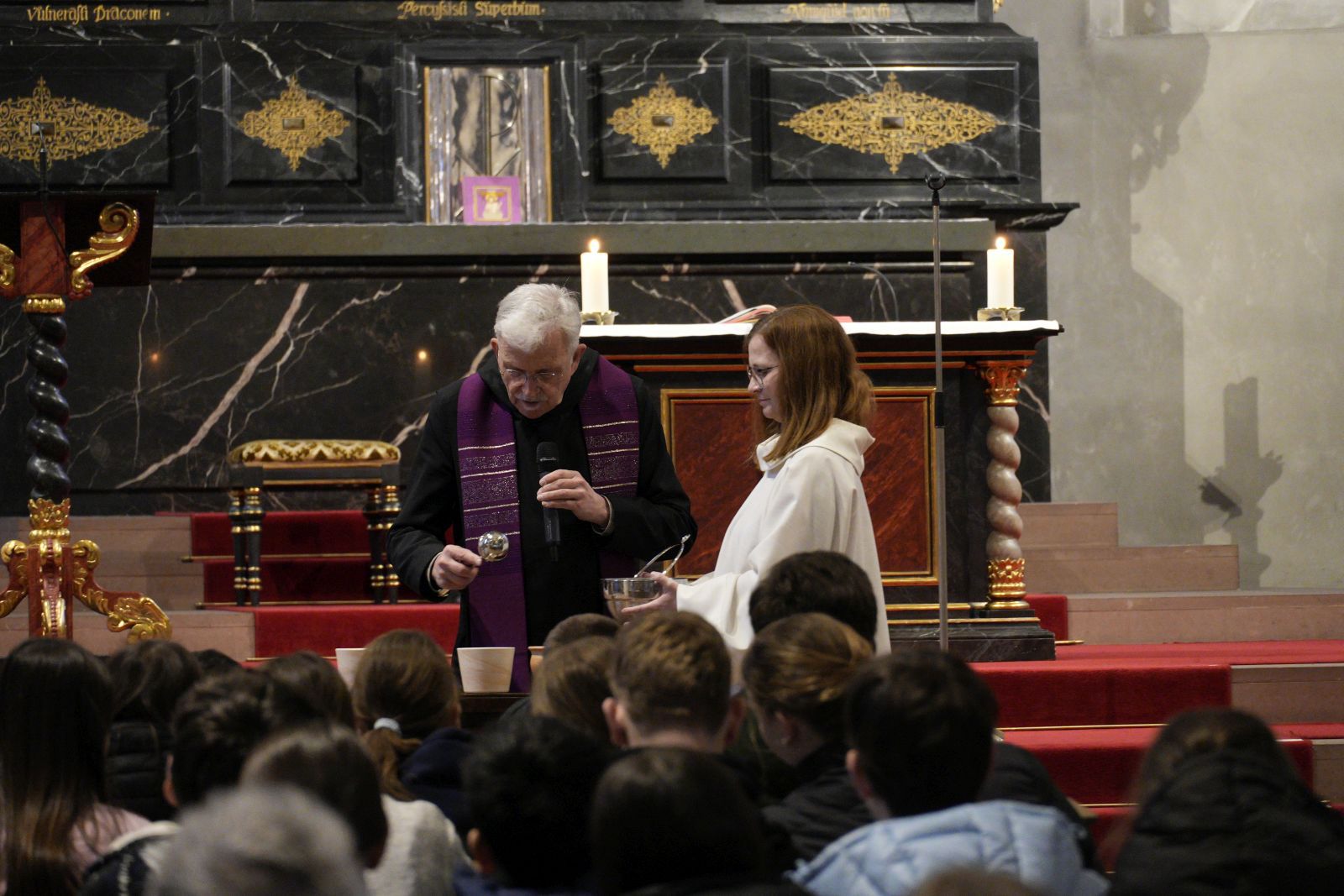 Unter dem Thema „Sich in den Blick nehmen“ haben die Schülerinnen und Schüler am Aschermittwoch in drei Gottesdiensten in der Propstei-Kirche die Fastenzeit begonnen. So waren sie eingeladen, sich selbst in den Blick zu nehmen und sich zu überlegen, was sie in der Fastenzeit ändern möchten, um Jesu Botschaft besser zu folgen und gut zu sich selbst zu sein.