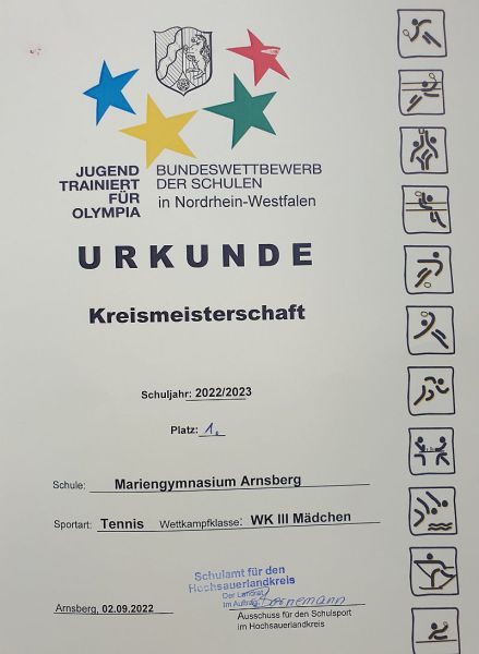 Tennisspielerinnen des Mariengymnasiums sind Kreismeister