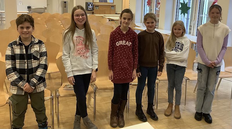 Der diesjährige Vorlesewettbewerb für sechste Klassen des Mariengymnasiums fand am 30.11. in den ersten beiden Stunden in der Cafeteria statt. Nachdem sich jeweils zwei Kandidatinnen und Kandidaten in den jeweiligen Klassenentscheidungen durchgesetzt hatten, traten Leni Rocholl und Lilli Weber für die 6a, Lina Prenger und Jannes Kortz für die 6b und Hannah Kintrup sowie Irma Spielmann für die 6c an.