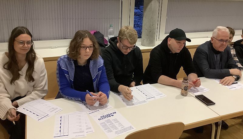 Nach den Wahltexten, die die Schüler schon kannten und einüben konnten, folgte der ungekannte Text, aus dem auch drei Minuten vorgetragen wurden. Dieser stammte aus Sabine Ludwigs Jugendbuch „Hilfe, mein Lehrer geht in die Luft“, aus dem fortschreitend vorgelesen wurde. Die Bewertungskriterien waren der flüssige Vortrag mit deutlicher Aussprache und guter Betonung (Lesetechnik), sowie die Interpretation des Textauszugs durch den lebendigen, nuancenreichen und trotzdem ungekünstelten Vortrag.