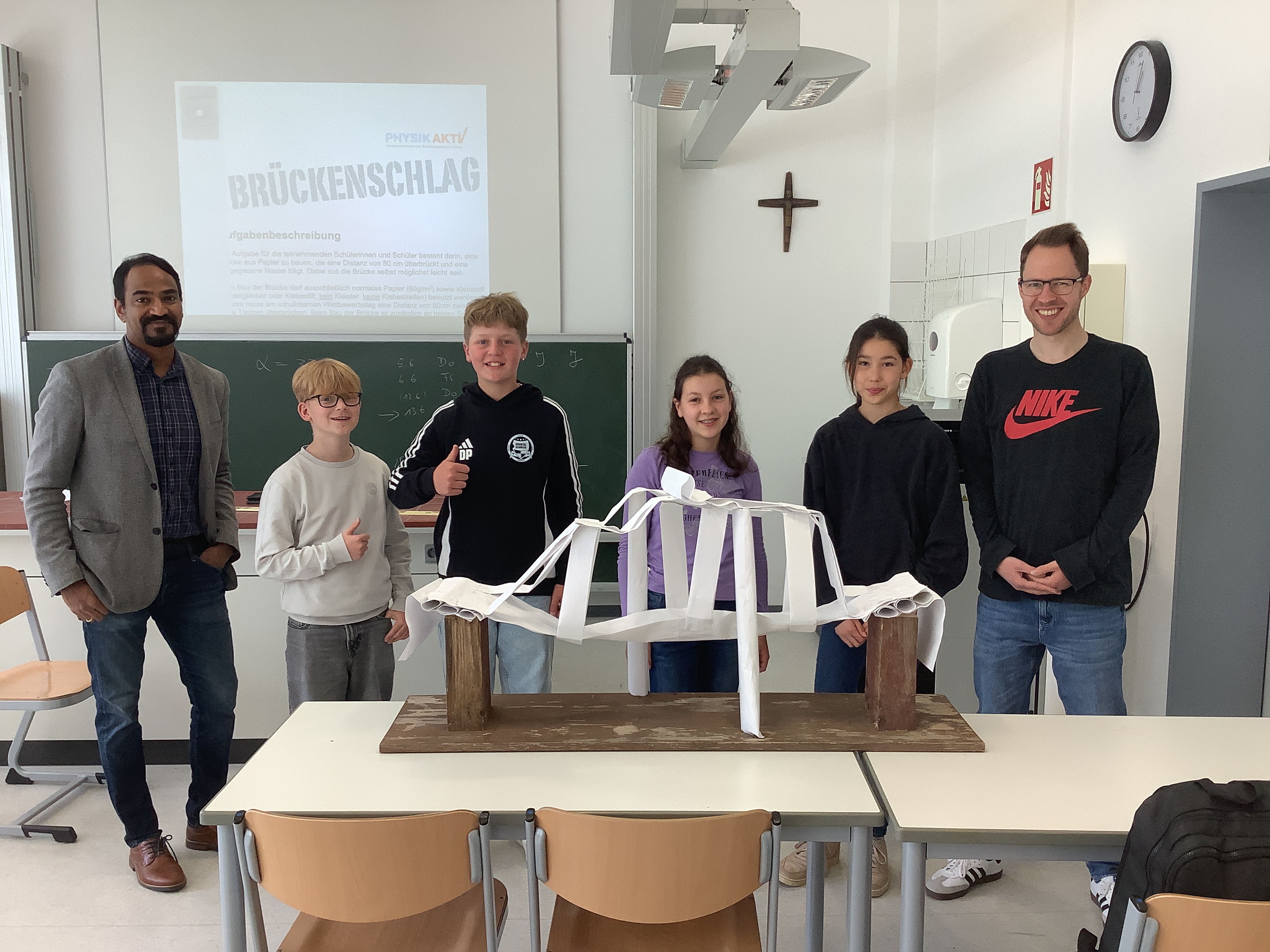 Am Mittwoch, dem 28. Mai 2025, fand am Mariengymnasium Arnsberg die schulinterne Vorausscheidung zum Wettbewerb „Physik aktiv“ der Bezirksregierung Arnsberg und der Fachhochschule Südwestfalen (Hagen) statt. Der Wettbewerb richtete sich an die Klassen 5 bis 8 und stand in diesem Jahr unter dem Thema „Brückenschlag“.