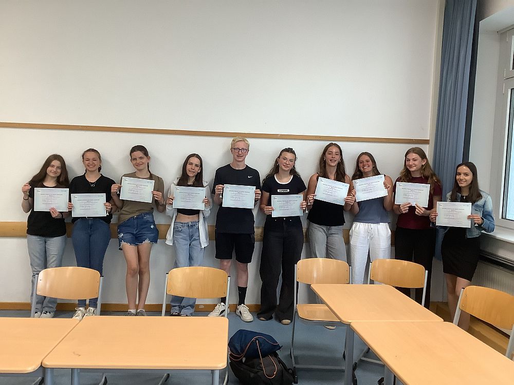 Am 18. Januar und am 1. Februar absolvierten zwölf Schülerinnen und Schüler der Klassen 8 und 9 die DELF-Prüfung. Kurz vor den Sommerferien trafen die mit Spannung erwarteten Zertifikate ein.