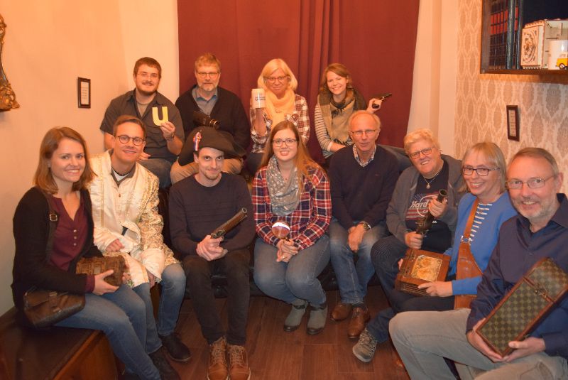 In den Herbstferien traf sich die Fachschaft Mathematik an einem besonderen Ort, um Besonderes zu tun. Am 25.10.2018 ergab sich die Gelegenheit, dass sich die Fachschaft Mathematik von ihren ehemaligen Kolleginnen und Kollegen (Frau Steeger, Frau Herlt und Herrn Schmidt) gebührend verabschieden konnte. Als gemeinsame Aktion stand als erster Tagesordnungspunkt bei ihrer letzten Fachschaftssitzung der Besuch eines Escaperooms in Dortmund auf dem Programm. Eine Stunde lang rätselten und knobelten sich zwei Teams durch diverse Aufgabenstellungen, um jeweils dem Raum zu entkommen.