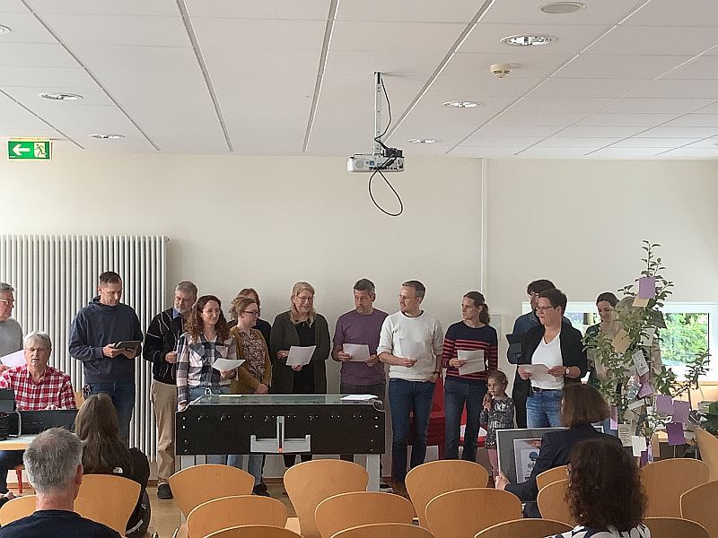 Unter anderem trug der Lehrerchor unter der Melodie des Songs „Yesterday“ (The Beatles) ein selbst gedichtetes Lied vor, in dem das innovative Wirken von Frau Regniet besungen wurde.