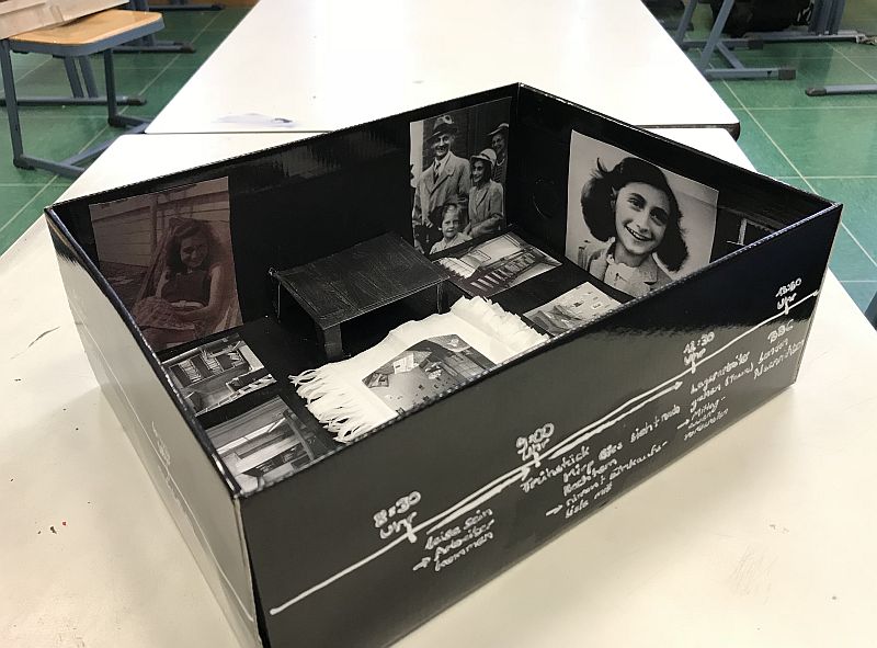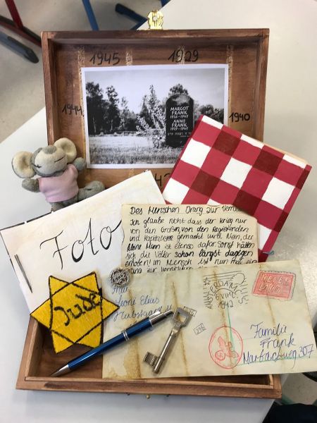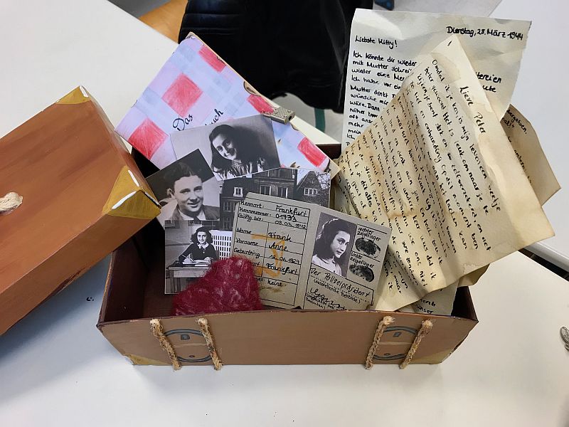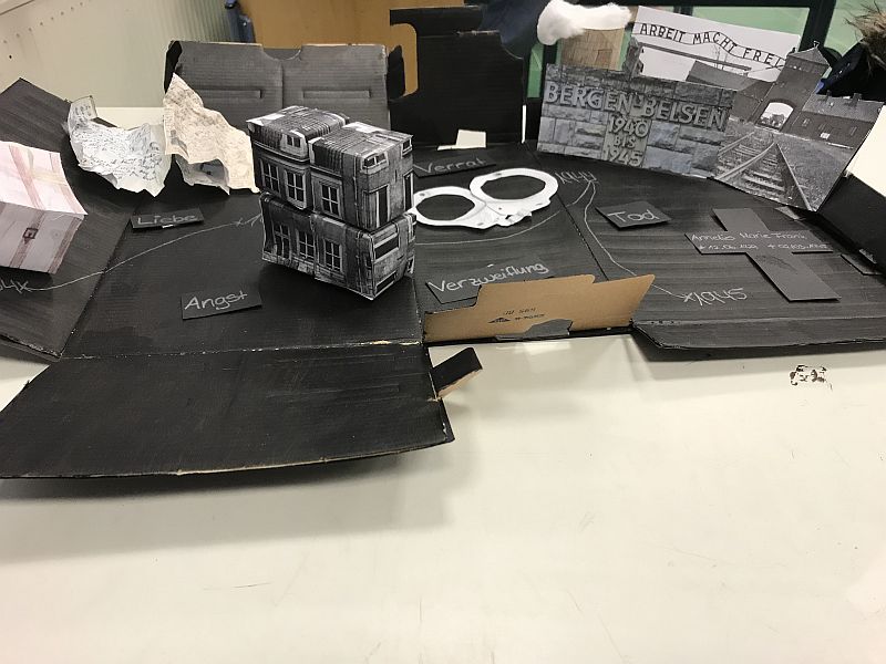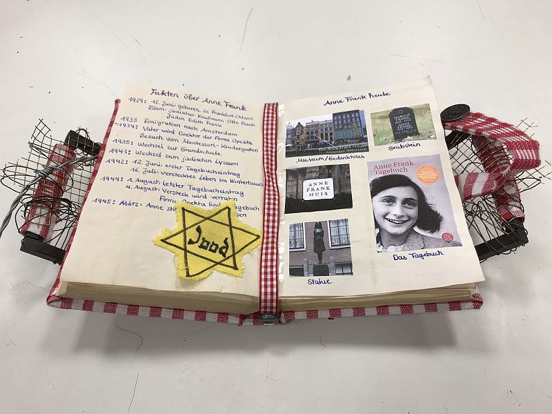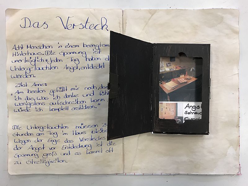 Unter der Leitung ihres Kunstlehrers, Herrn von Rüden, haben sich die Schüler individuell mit dem Thema „Anne Frank“ befasst, indem sie eine „Ästhetische Forschung" durchgeführt haben. Im Rahmen dieser Arbeitsweise haben sie sich einen selbstgewählten Zugang zu dem Thema verschafft, sodass sie sich aus verschiedenen Perspektiven und mithilfe verschiedener Techniken ihrer selbstgewählten „Forschungsfrage" widmeten.