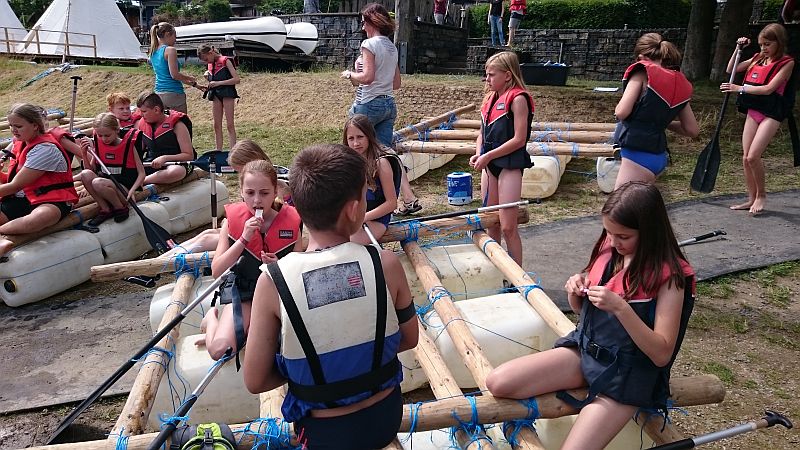 Am Montag, den 09. Juli, hatte die Klasse 5b ein spannendes Programm: Floßbau stand auf dem Stundenplan. Nachdem alle Schüler, einschließlich der Klassenlehrerinnen Frau Müer und Frau Regniet, sich am Mosaik Outdoordzentrum Sorpesee eingefunden hatten, ging es auch schon los. Die Klasse wurde in drei Gruppen eingeteilt und diese bauten in knapp einer Stunde ein mehr oder weniger gutes oder auch fahrtüchtiges Floß.
