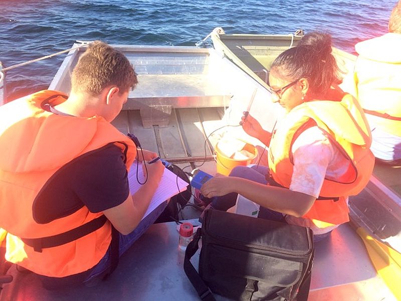 Der zweite Tag begann mit dem Highlight der Exkursion: Die Schülerinnen und Schüler sind mit Booten auf das Hauptbecken gefahren und haben hier Proben entnommen. Trotz koordinatorischer Schwierigkeiten mit den Paddeln und böser Spinnen in den Booten, haben es am Ende doch alle wieder trocken (oder halbtrocken) an Land geschafft. Die Proben wurden am folgenden Nachmittag im Labor der ökologischen Station arbeitsteilig untersucht und ausgewertet.