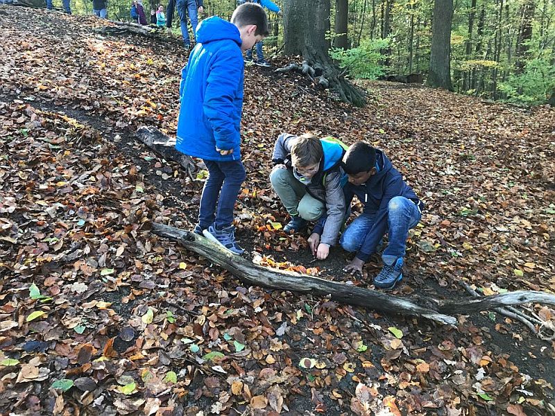 Am Mittwoch, den 31. Oktober 2018, machten sich die Schülerinnen und Schüler der Klasse 5b bei strahlendem Sonnenschein zu einer Erlebniswanderung durch das Eichholz auf. Begleitet wurden sie von ihren Klassenlehrern Herrn Wietschorke und Frau Kreis, die auch noch ihren Hund Max als Unterstützung mitbrachte.