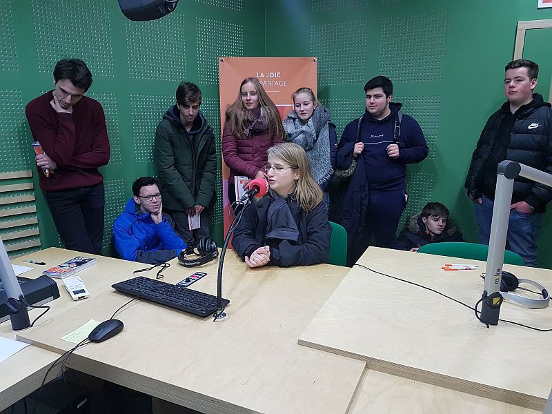 Wie schafft man es ins Radio von Lüttich? Man fährt mit fast 50 Schülerinnen und Schülern der Klasse 9 an einem Freitag mit dem Bus nach Lüttich, spaziert ins Radio et parle français…