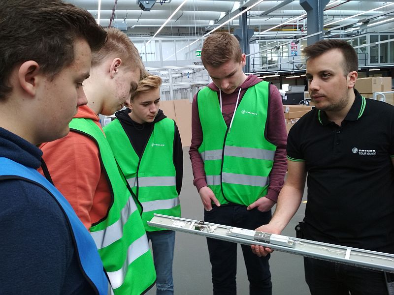 Am 11.03.2019 besuchten die Teilnehmer der AG Wirtschaft FAIRstehen die Firma Trilux in Arnsberg-Neheim. Zu Beginn gab es eine Führung durch die Produktions- und Lagerhallen, die Ausbildungswerkstatt und die werkseigenen Freizeiteinrichtungen. Dabei wurde sehr anschaulich, dass die bei der Produktion auf einen sinnvollen Umgang mit Ressourcen und ein positives Arbeitsklima für die Angestellten geachtet wird.