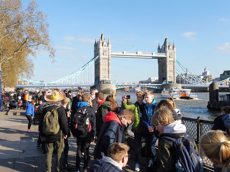 Am Mittwoch kam dann für viele das Highlight - und zwar der Tag in London. Als Erstes liefen die Mädchen und Jungen vorbei an der Themse, dem London Eye, dem Houses of Parliament hin zur Westminster Abbey. Danach kamen sie zum Herz von London, dem Buckingham Palace. Am Piccadilly Circus traf die 7c die Zwillingsschwester ihrer Lehrerin Frau Jung. Wir bewunderten die Artisten am Convent Garden und führten unsere Gruppe selbstständig mit der Underground zurück zum Treffpunkt.