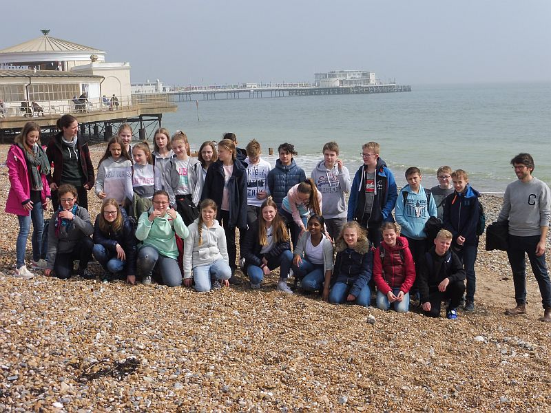 In der Woche vor den Ferien fuhren wir, Schüler der Jahrgangsstufe 7, für eine einwöchige Klassenfahrt nach England, genauer gesagt nach Worthing. Bis die Klassen an ihrem Zielort ankommen sollten, erwartete sie eine ca. zwölfstündige Busfahrt.Am Montagmorgen wurden wir mit Bussen zum Strand von Worthing gebracht, wo es eine Stadtrallye gab. Zwei Stunden konnten die Schüler in Kleingruppen auf eigene Faust losziehen. Nachdem die Sieger schließlich gekürt wurden, ging es für den Jahrgang in das Bowlingcenter in Worthing. Abends wurden alle von ihren Gastfamilien wieder vom Bus abgeholt.