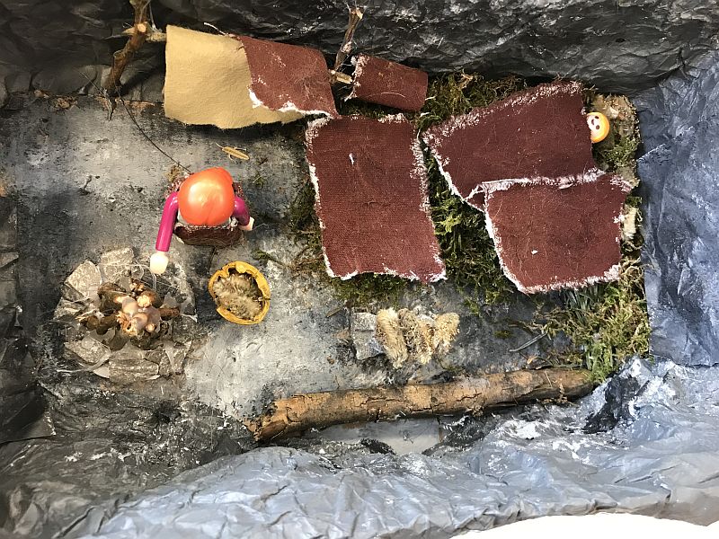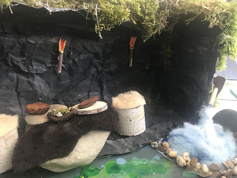 Zunächst beschäftigten sich die Schüler mit dem Leben in der Altsteinzeit. In diesem Zusammenhang fand beispielsweise eine Auseinandersetzung mit Höhlenmalerei und den Lebensformen der Steinzeitmenschen statt. Anschließend gestalteten die Schüler aus unterschiedlichen natürlichen und künstlichen Materialien eine Steinzeithöhle.