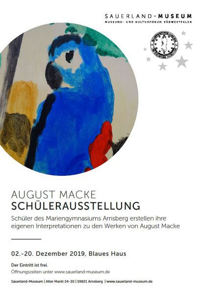 Anlässlich der Ausstellung „August Macke - ganz nah“ im Sauerland-Museum haben sich Schülerinnen und Schüler verschiedener Klassen und Jahrgangsstufen des Mariengymnasiums im Kunstunterricht mit der Biografie und dem Werk des Künstlers und der Kunst des frühen 20. Jahrhunderts beschäftigt. Aus dieser Beschäftigung heraus sind eigene künstlerische Arbeiten entstanden, die vom 2. bis zum 20. Dezember in einer Schülerausstellung im Sauerlandmuseum zu sehen sind.