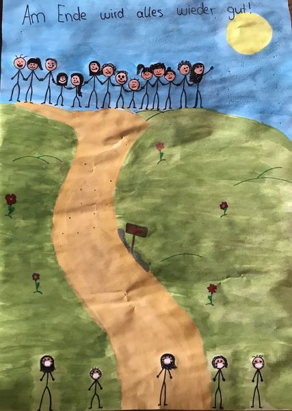 Die Grafik soll versinnbildlichen, wie groß die Freude sein wird, wenn alle Schülerinnen und Schüler wieder in einem Raum unterrichtet werden dürfen.