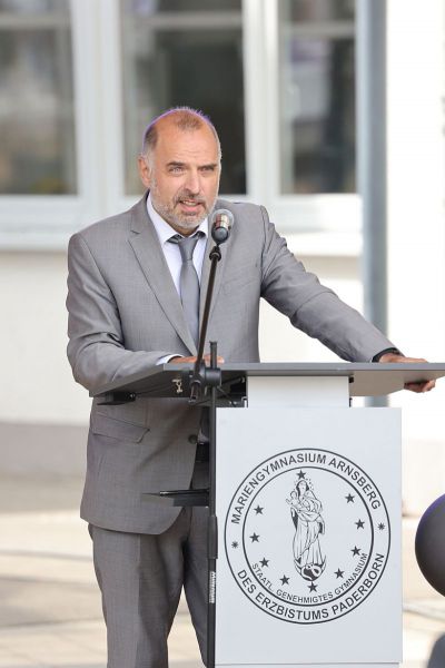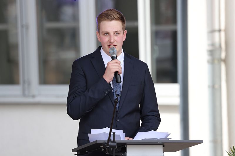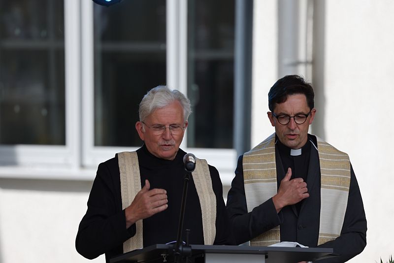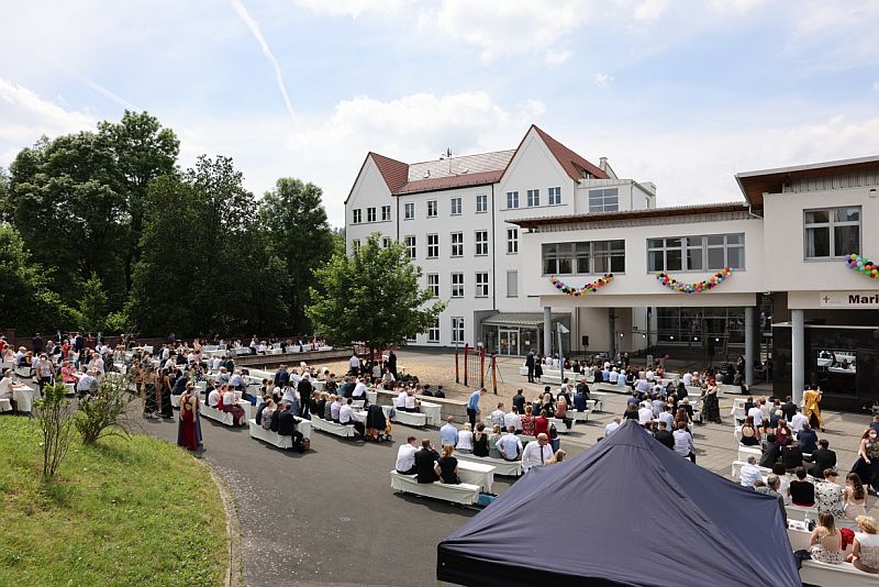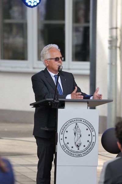 Beim geistlichen Impuls von Pater Werner und Hr. Smuda wurde der Schulhof zur „Kirche unter freiem Himmel“. Auf das bewegende Gedenken an Oskar schlossen sich mehrere Grußworte und Reden an, passend zum Motto „ABI COLADA – 12 Jahre mitgemischt“.