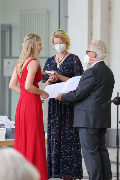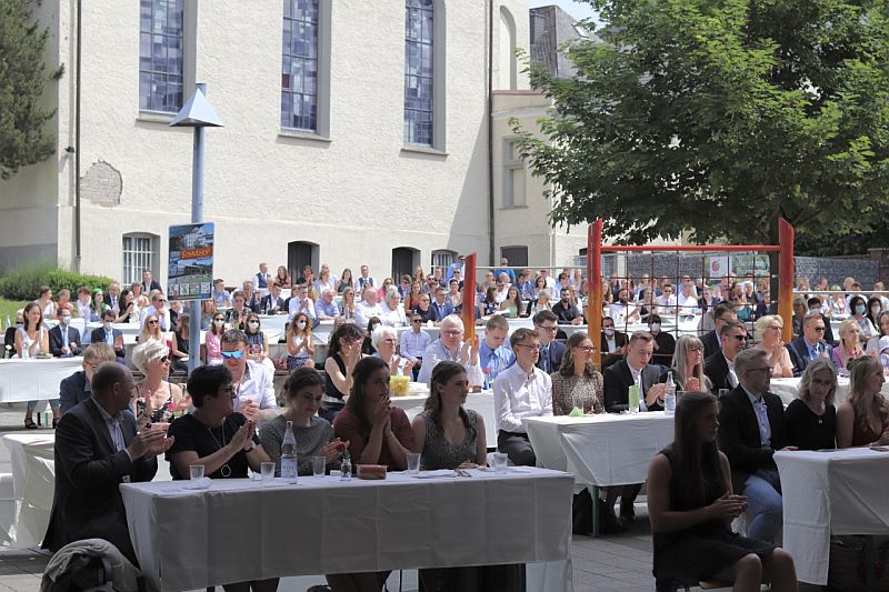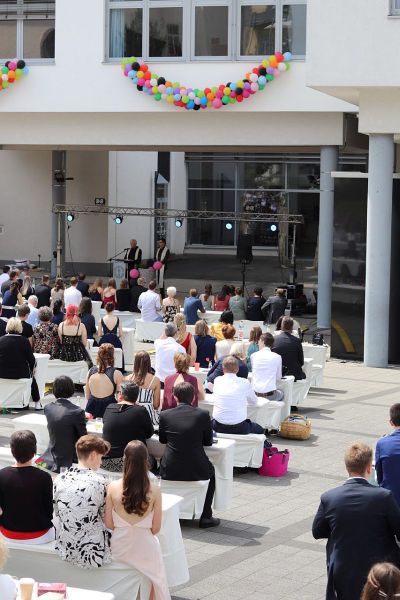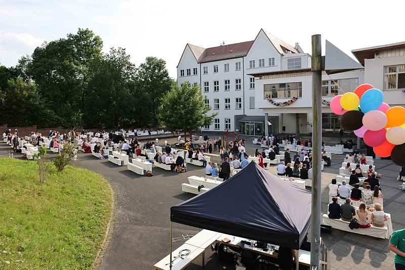 Am Freitag, dem 25.6.2021, wurden unsere Abiturientinnen und Abiturienten feierlich verabschiedet. Wie im vergangenen Jahr wurden die Abiturzeugnisse im Freien vor der Schule überreicht.