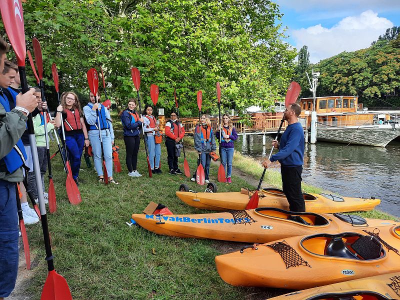 An unserem letzten Tag sahen wir Berlin aus einer ganz anderen Perspektive. Sportlich unterwegs erkundeten wir den Landwehrkanal in Kajaks.