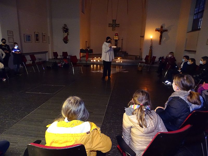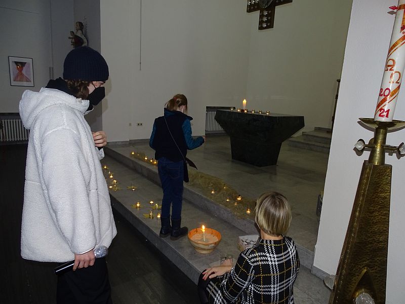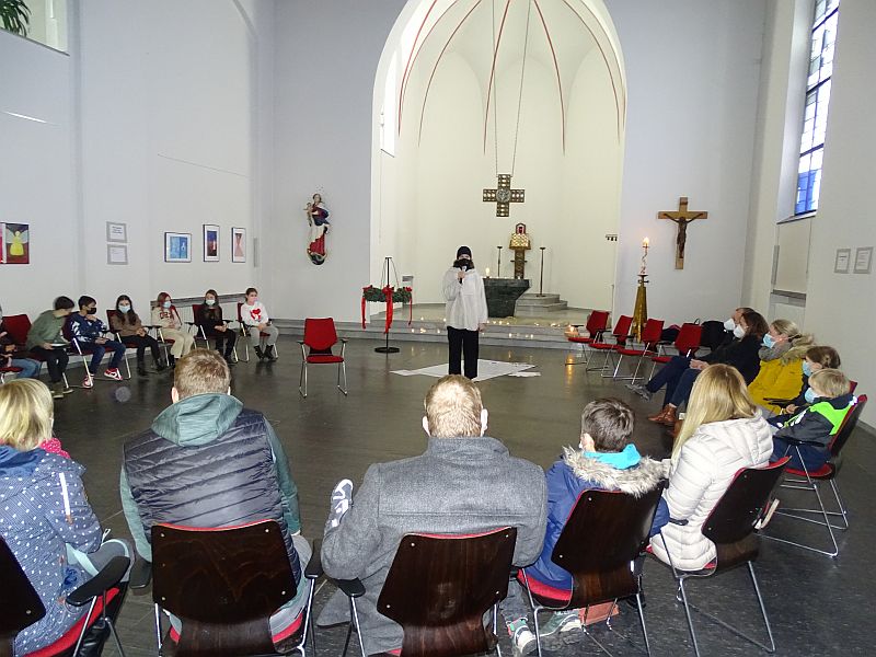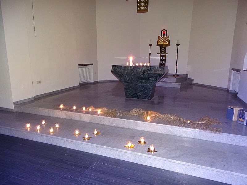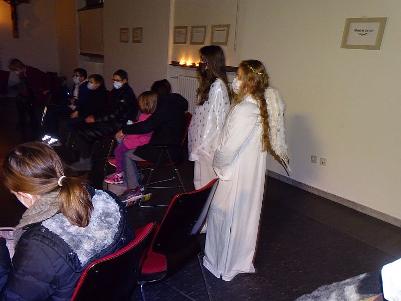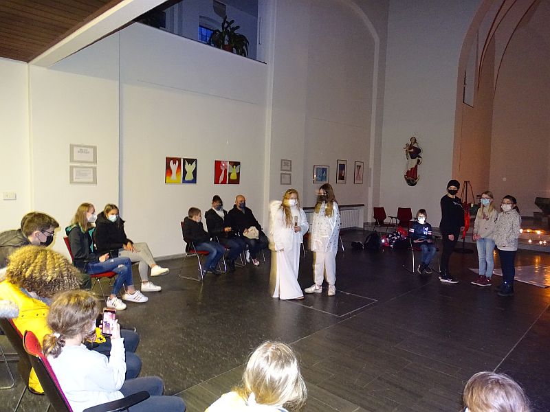 Im Rahmen der Tage der Offenen Tür wurde in der Kapelle eine Ausstellung über Engel in der Kapelle eröffnet. Besuchende wurden dazu herzlich eingeladen, sich, so wie ich (Lukas Weigert, Q2) während meiner Recherche, auf die Suche nach Engeln zu begeben. Die Ausstellung setzte sich aus einem inhaltlichen Rundgang, ausgewählten Kunstwerken und Schauspielvorführungen zusammen. Große Fragen wie zum Beispiel, ob es Engel überhaupt gibt und wenn ja, wie sie aussehen, und welche Bedeutung sie als Boten Gottes für den Glauben haben, waren Grundlage für inspirierende und tiefgründige Gespräche. Die Kapelle bewies sich somit als multifunktionaler Raum, in welchem Spiritualität und Glauben erfahrbar werden.