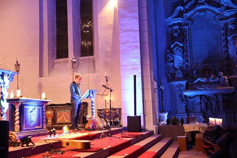 Benita Golz („Wir suchen Frieden“), Jonas Reiter („Ich glaube nicht an das Recht des Stärkeren“), Matthias Beine („Herr, mache mich zu einem Werkzeug deines Friedens“) und Benedikt Frielinghausen („Lasst uns träumen“) trugen dazwischen Texte und Gebete bei.