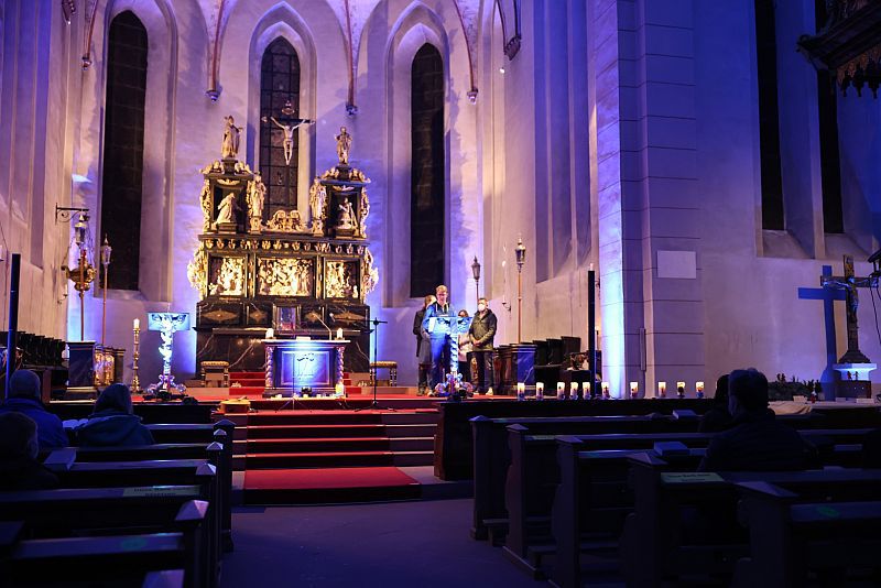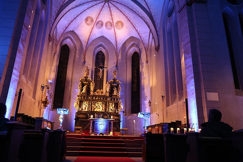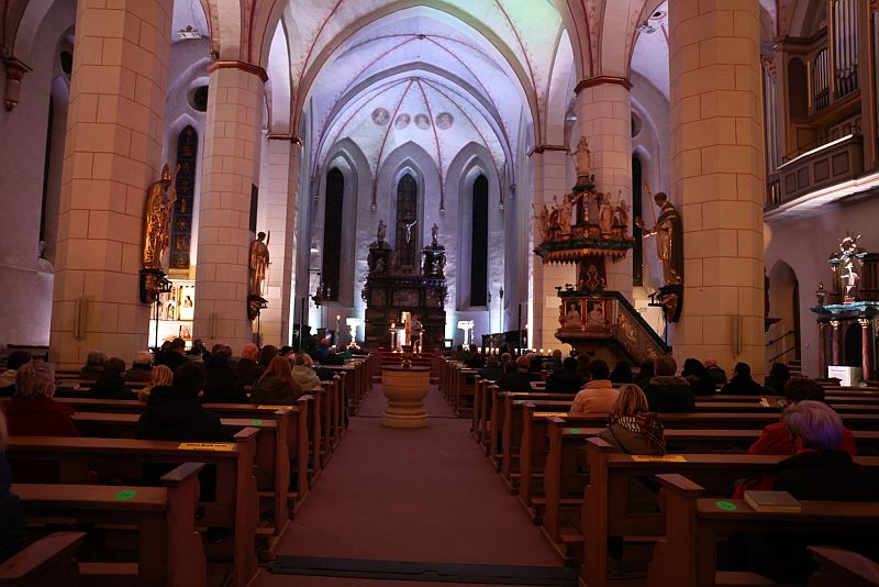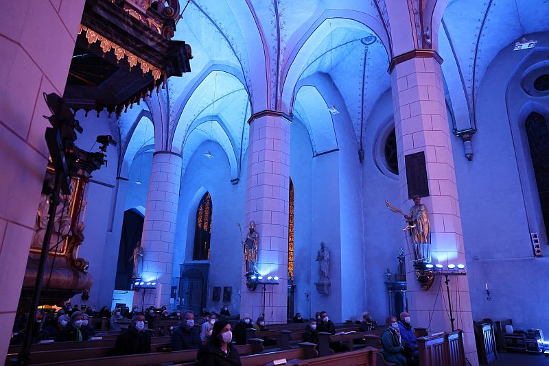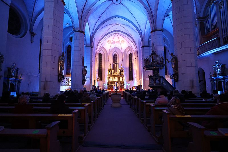Am Sonntag, 06.03.2022, veranstaltete das Mariengymnasium im Anschluss an die Abendmesse in der Propsteikirche in Arnsberg eine gut besuchte Andacht in Solidarität mit den Menschen in der Ukraine. Nach einer kurzen Einleitung von Matthias Beine gestalteten Schülerinnen und Schüler den Abend mit Texten, Musik und unserer Veranstaltungstechnik.