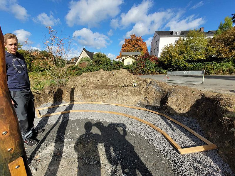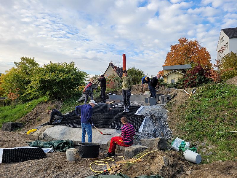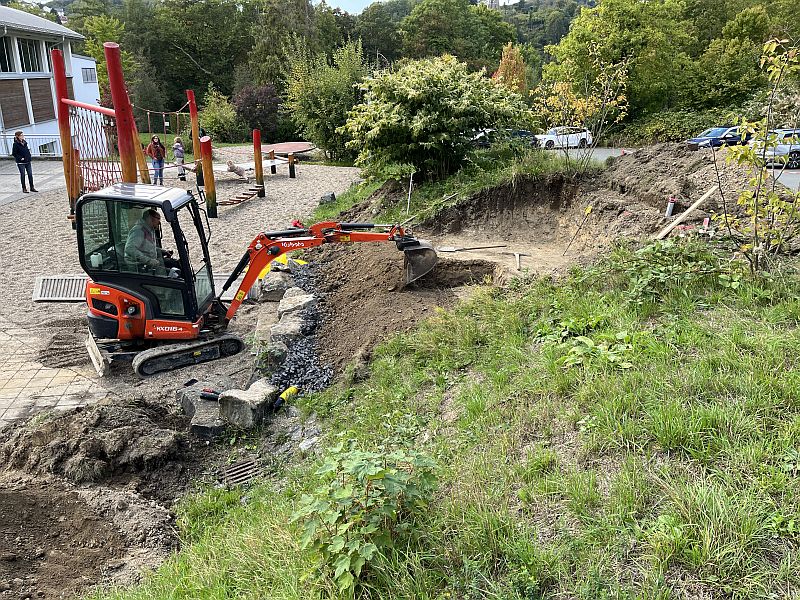 Herr Rickert führte die Baggerarbeiten aus. Ohne Bagger wäre es nicht möglich gewesen, die großen Steine zu bewegen.