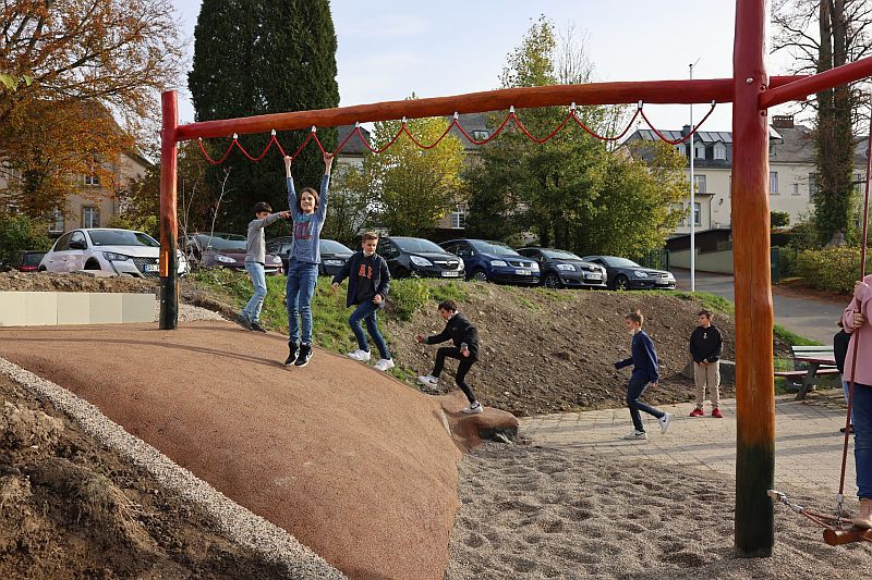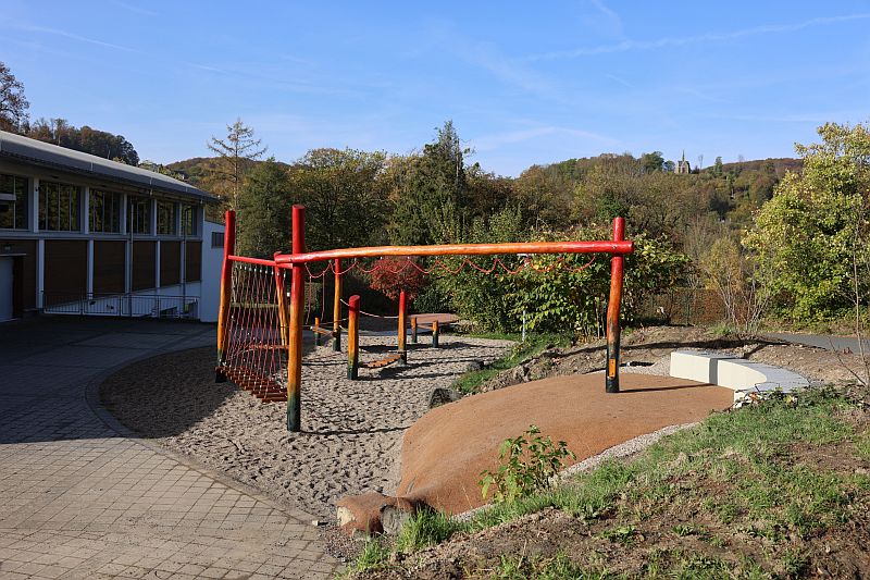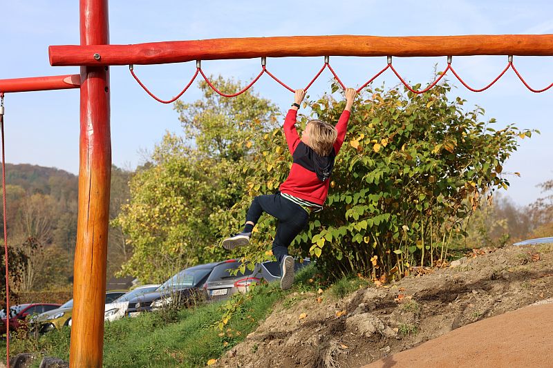 Die Hangelstrecke wird bereits gut angekommen. Nicht nur jüngere, sondern auch ältere Schülerinnen und Schüler probieren ihre Kletterkünste auf der Hängelstrecke aus und haben viel Freude daran, ihre Koordination zu verbessern.