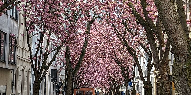 Jedes Jahr zeigen sich die Pflanzen von ihrer besonders bunten Seite - und besonders schön sind dabei die Kirschblüten in der Bonner Altstadt. Wie man es auch in Japan macht, haben wir das Wetter beobachtet und geduldig gewartet, bis die Kirschblüten aufgehen, um auch unser „Blütengucken", das sogenannte „Hanami", zu erleben. Dieses Jahr war es noch längere Zeit kälter, sodass sich die rosa Pracht erst Mitte April zeigte.