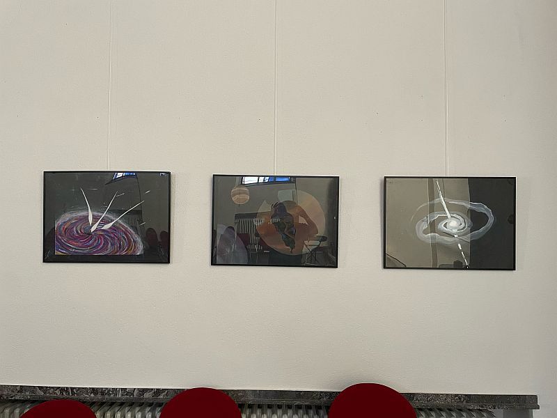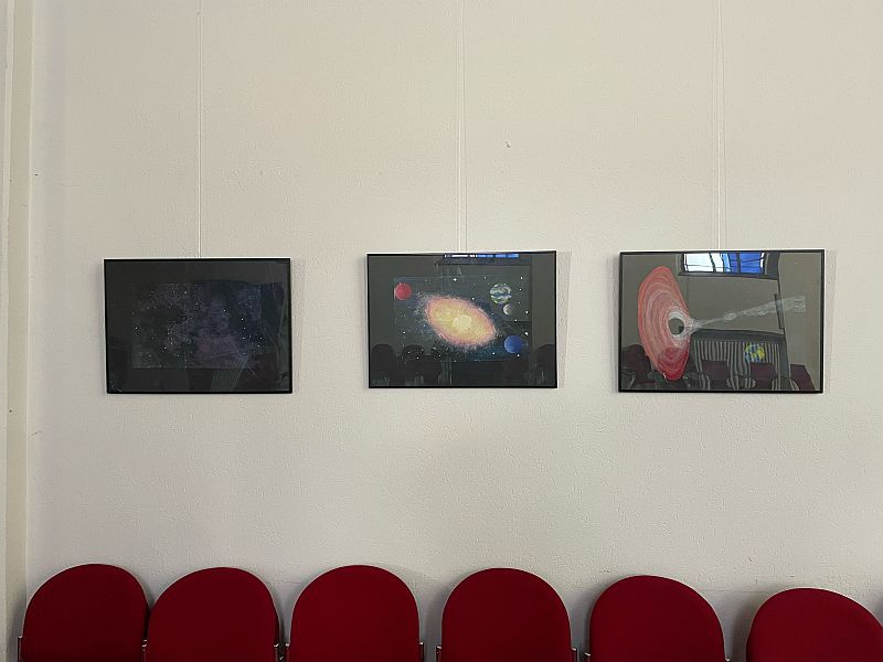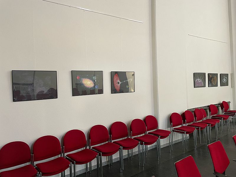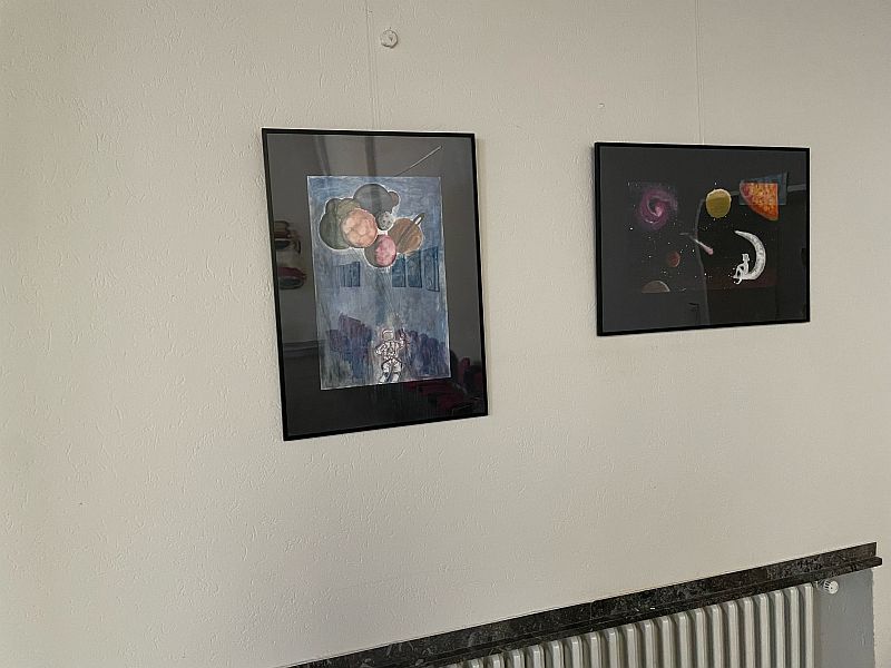 In der Kapelle werden aktuell Arbeiten aus dem Kunstunterricht zum Thema Weltraum ausgestellt. Die Schülerinnen und Schüler konnten nach einer theoretischen Auseinandersetzung mit dem Thema die gestalterische Umsetzung frei wählen. So werden teilweise natürliche Phänomene, aber auch Bilder aus dem Bereich der Phantasie, gezeigt. Die Bilder sind hauptsächlich mit Acrylfarbe gemalt.