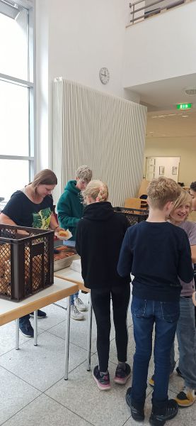 Wieder an der Schule angekommen, konnten sich die Teilnehmerinnen und Teilnehmer mit einem Imbiss stärken, der vom Team der Cafeteria angeboten wurde.