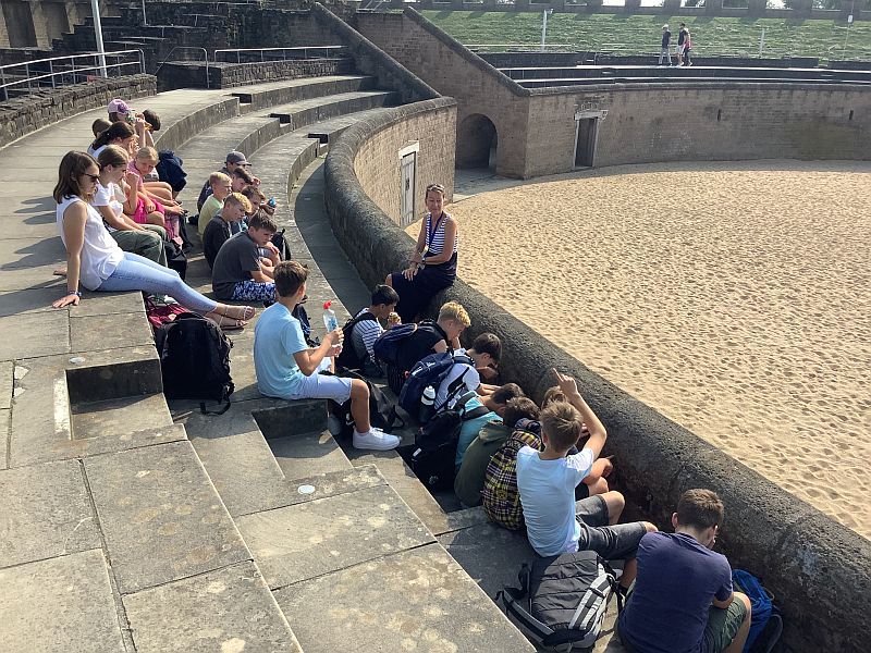 Am Montag, den 1. September, fuhren die Schülerinnen und Schüler der Jahrgangsstufe 7 gemeinsam nach Xanten, um sich über die Lebensweise im alten Rom zu informieren. Begleitet wurden sie von Frau Bodenhagen, Frau Bodenstaff, Herrn Cornelsen Herrn Jakobi, Herrn Loos und von Herrn von Przewoski.