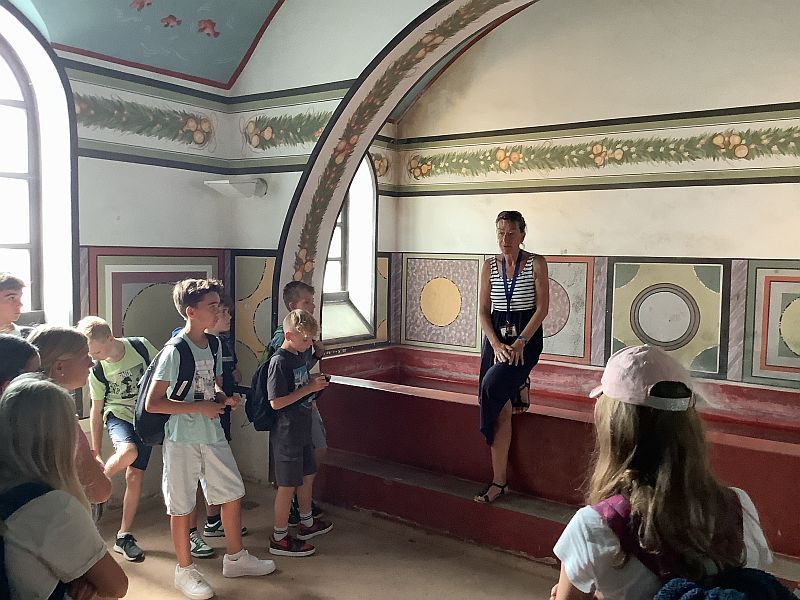 Die Schülerinnen und Schüler erhielten außerdem die Gelegenheit, das Freilichtmuseum in Gruppen eigenständig zu erkunden. Viele von ihnen genossen in ihrer Freizeit den bei heißen Temperaturen erfrischenden Wasserspielplatz, nutzten das große Lufttrampolin oder kauften sich ein Souvenir im Museumsshop.