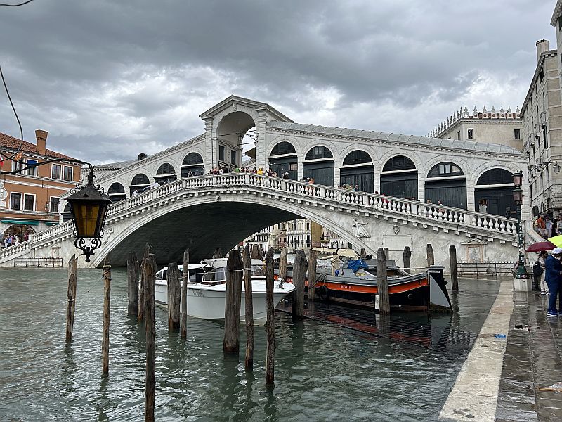 Tag vier stand Venedig ganz im Mittelpunkt. Trotz Wolken am Himmel starteten wir optimistisch. In Gruppen stürzten wir uns in die Gassen und wurden von wunderschönen Brücken, atemberaubender Architektur und süßen Läden beeindruckt. Schnell schlug jedoch das Wetter um. Während manche auf dem berühmten Markusplatz standen und Fotos machten, wurden sie plötzlich überrascht. Es regnete nicht nur, es goss in Strömen, und dazu entwickelte sich noch ein ordentliches Gewitter. In manchen Gassen stand das Wasser bis zum Knöchel. Doch Venedig ist selbst bei schlechtem Wetter einfach nur atemberaubend. Die Kanäle, die Gondeln und der Markusplatz– das alles hatte etwas Magisches. Wir haben uns durch den Regen gekämpft, Fotos gemacht, in Cafés Zuflucht gesucht und trotzdem die Stadt genossen. Unser Motto des Tages lautete: „Es gibt kein schlechtes Wetter, nur schlechte Kleidung“ – und ja, unsere Kleidung war schlecht.