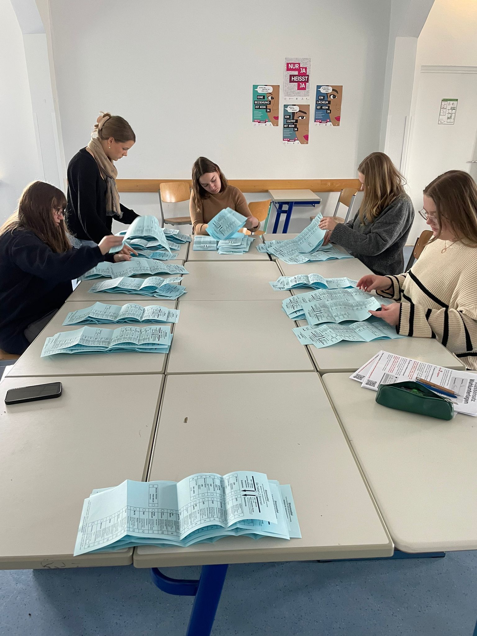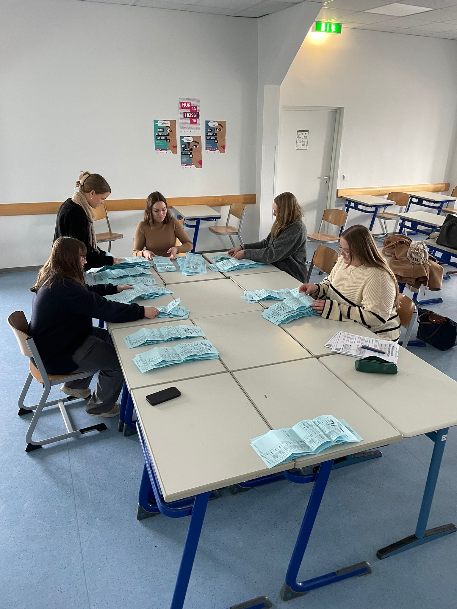 Die Wahl fand während der Politikstunden statt, und mit einer Wahlbeteiligung von 86,7 % lag die Schule sogar über der Beteiligung bei der „echten“ Bundestagswahl. Die Klasse 10b übernahm gemeinsam mit der Schülervertretung die Wahlaufsicht und sorgte für einen reibungslosen Ablauf.