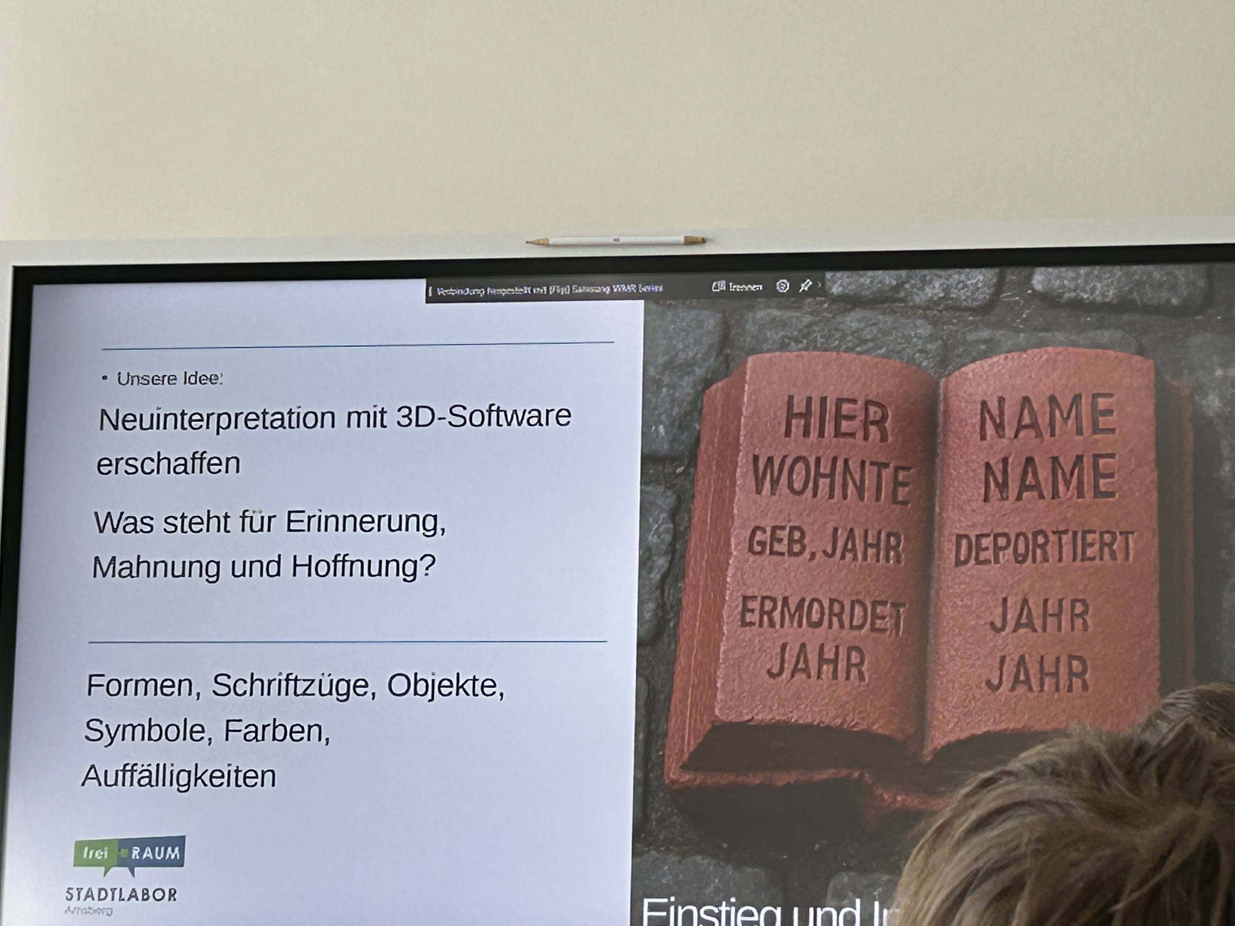 Neben gestalterischen Überlegungen entstanden auch digitale Erweiterungsideen. So schlugen einige Gruppen vor, QR-Codes auf den Gedenksteinen zu integrieren, über die weiterführende Informationen zu den Biografien der NS-Verfolgten abgerufen werden können. Ziel war es, den Opfern auf diese Weise ein „Gesicht“ zu geben.