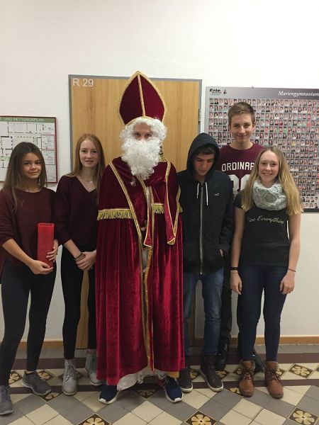 Am 6. Dezember besuchte der Nikolaus die Schüler des Mariengymnasiums. Diese freuten sich über den Besuch und sangen ihm das ein oder andere Adventslied vor.