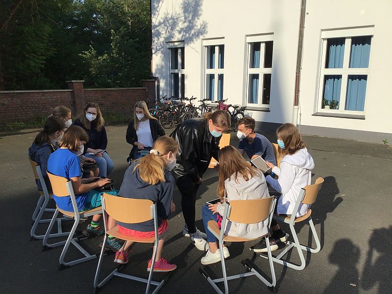 So trafen sich die OberstufenschülerInnen mit der Klasse 6a in Kleingruppen und führten zunächst eine Umfrage mit ihnen durch, um herauszufinden, welche Vorerfahrungen die Kinder mit sozialen Medien bereits gemacht haben. Im Anschluss wurde den Lernenden ein für diesen Zweck erstelltes Video gezeigt, anhand dessen sie erarbeitet haben, wie sich ein Opfer von Cybermobbing fühlt und welche Handlungsoptionen es in einer solchen Situation hat. Zum Abschluss haben die SchülerInnen der Klasse 6a einen Flyer sowie eine Übersicht mit Hilfsangeboten bei Cybermobbing innerhalb und außerhalb der Schule erhalten.