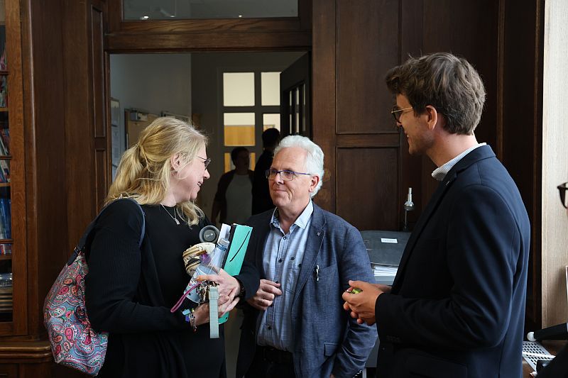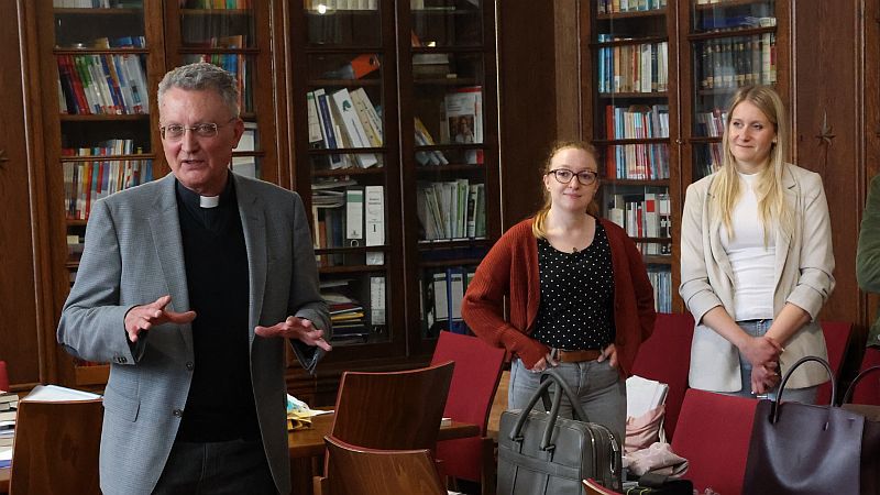 Außerdem fanden viele anregende Gespräche und Begegnungen mit verschiedenen Personengruppen statt. Herr Dompropst Göbel freute sich in der 2. Pause über die Gelegenheit, in lockerer Atmosphäre kurze persönliche Gespräche mit den Lehrenden führen zu können. Neben der Schülervertretung erhielten auch das nicht lehrende Personal (Sekretärinnen, Hausmeister), Elternvertreter und das Schulpastoralteam die Möglichkeit, sich mit unseren Gästen auszutauschen. Wie bei allen Begegnungen im Laufe des Tages fand der Austausch in einer guten und fröhlichen Stimmung statt.